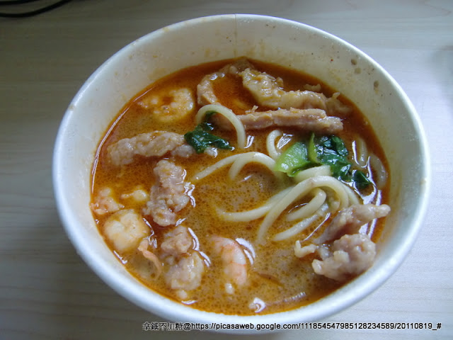 沙茶麵微辣,基本麵5元,加點其他配料再另外算,這樣一碗8元,對女生來說這樣份量剛好,吃完還可以吃一份甜點,男生大部分都會再加點一顆肉粽。